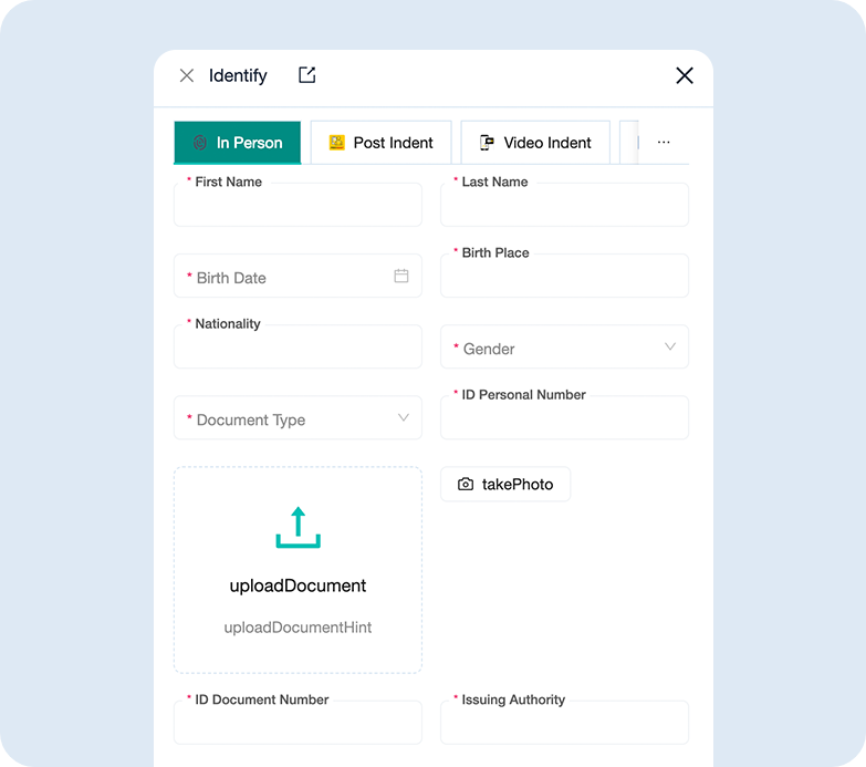 Unsere Plattform ermöglicht eine sichere und rechtskonforme Identifizierung von Kunden auf dem gewünschten Sicherheitsniveau. Ob für vertrauliche Dokumente, Verträge oder behördliche Anträge – die Identifikation erfolgt stets mit dem höchsten Sicherheitsstandard und gewährleistet eine nahtlose digitale Transaktion. Unternehmen können so die Identität ihrer Kunden verifizieren und sensible Prozesse optimal absichern.